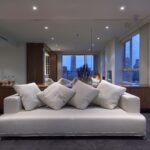 A mirrored wall to reflect the cityscape and an elegant French sofa adds a finishing touch.