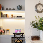 By choosing lighter neutrals as the foundation, the space instantly feels more open and inviting, and highlights the apartment’s generous dimensions. This approach not only enhances the natural light but also imbues the apartment with a sense of sophisticated luxury, reminiscent of the chic coastal elegance of the Hamptons.
